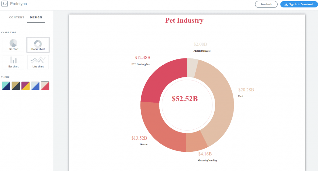 Adobe Spark는 PS 광고 AI와 달리 비설계자를 위해 설계되는그래프 그리기 사이트입니다. 원, 막대, 선, 도넛 차트 등 4가지 차트 종류만 만들 수 있지만 컬러 배합을 쉽게 선택할 수 있다는 장점을 가지고 있습니다. 데이터를 입력하고 그래프와 컬러 배합을 선택하면 세련한 설계된 그래프가 나타납니다. 차트를 저장하여 다른 프로젝트로 인쇄, 공유 또는 가져오기도 지원합니다.