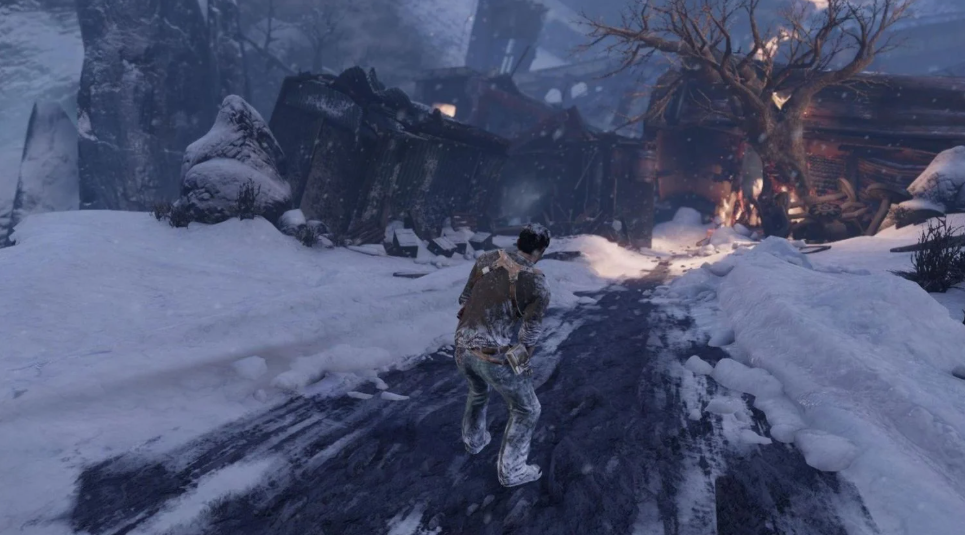 언차티드 황금도와 사라진 함대(Uncharted 2)에서는 열차 탈출 후 눈밭을 통과하는 장면이 인상적입니다. 여기서 '흩어진 쓰레기'는 바로 눈입니다. 눈이 녹아 벗겨진 부분이 진행 루트이고, 눈이 그대로 남아 있는 곳은 '가면 안 되는 곳'입니다.