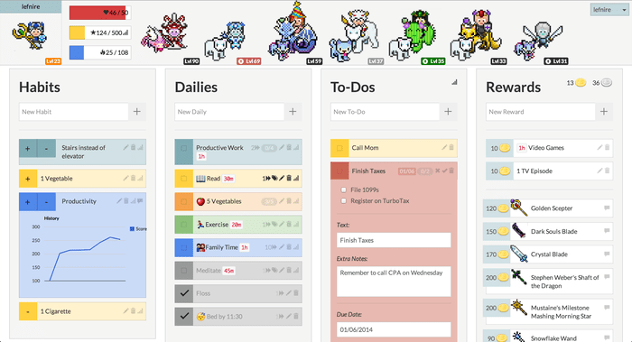 새로운 습관을 형성하는 데 일관성을 유지하기 어려운 사람들을 위해 Habitica는 진행 상황을 보다 가시적이고 가시적으로 만드는 보상 시스템을 제공합니다. 마치 RPG 게임처럼 프로세스에 접근하며 사용자가 주인공입니다.