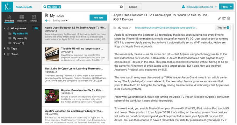 Nimbus Note 는 간단한 메모 관리자입니다. 메모를 만들고 편집하고 폴더와 하위 폴더에서 정렬한 다음 동료와 공유할 수 있습니다.