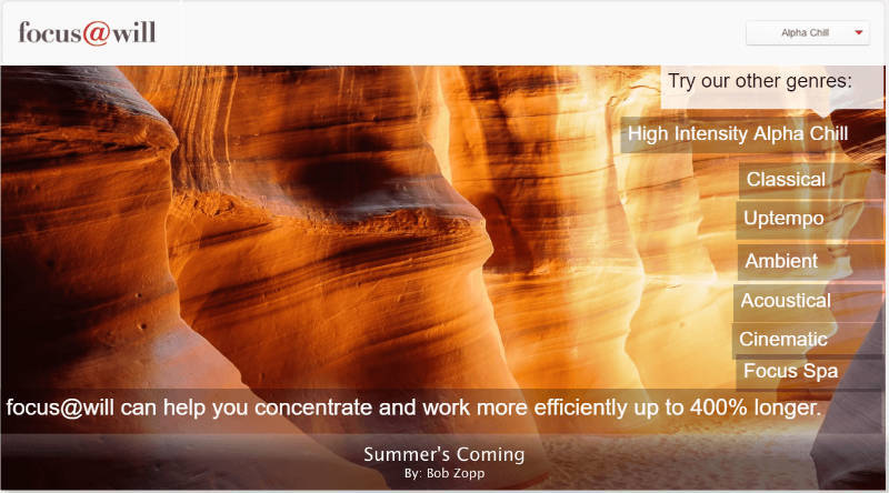 Focus@Will 은 생산성과 집중력을 높여 작업을 더 빨리 끝내고 덜 미루는 데 도움이 되는 기악을 제공합니다.