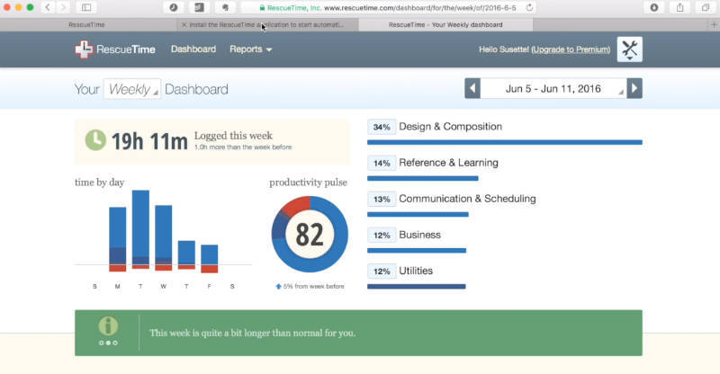 Clockify는 간단한 작업 시간 추적기이지만, RescueTime은 더 자동 생산성 추적기처럼한다. 다양한 소프트웨어나 웹사이트에서 보낸 시간을 자동으로 측정한 다음 이 데이터를 쉽게 액세스할 수 있는 클라우드에 저장합니다.
