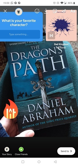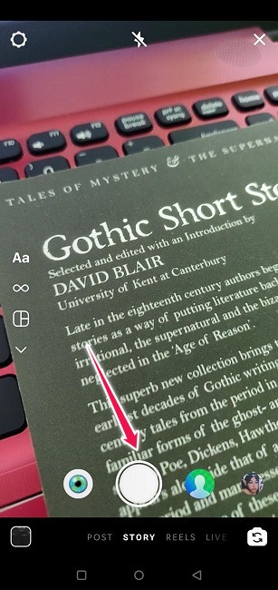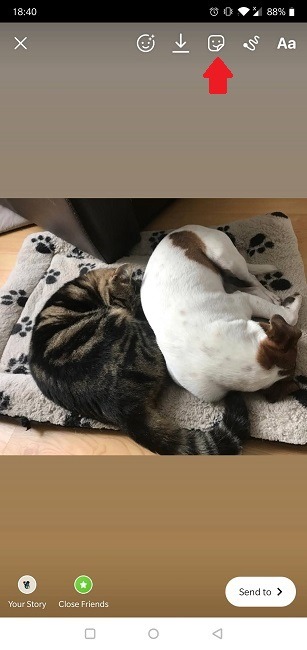 1. 스토리를 만드는 데 사용한 기술에 관계 없이 다음에는 화면에서 위로 스와이프해야 합니다. 또는 화면 오른쪽 상단에 있는 스티커 아이콘을 탭할 수 있습니다.