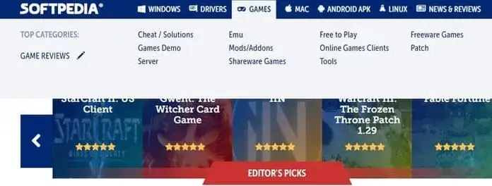 Softpedia는 무료로 게임을 다운로드할 수 있는 또 다른 훌륭한 웹사이트입니다. 웹사이트에서 무료 게임뿐만 아니라 인기 있는 PC 소프트웨어도 제공합니다. Softpedia에서 게임, 게임 소프트웨어 및 기타 게임 관련 도구를 무료로 얻을 수 있습니다. 광범위한 액션, 레이싱, 서바이벌, RPG, 멀티플레이어 및 시뮬레이션 게임이 있습니다.