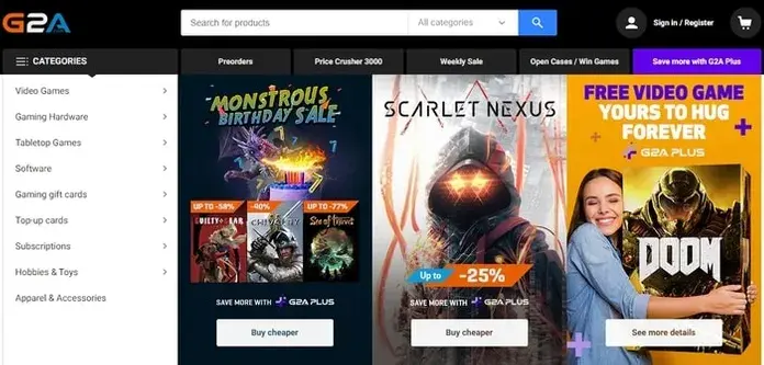 - G2A.com에서 최신 게임을 다운로드할 수 있습니다.