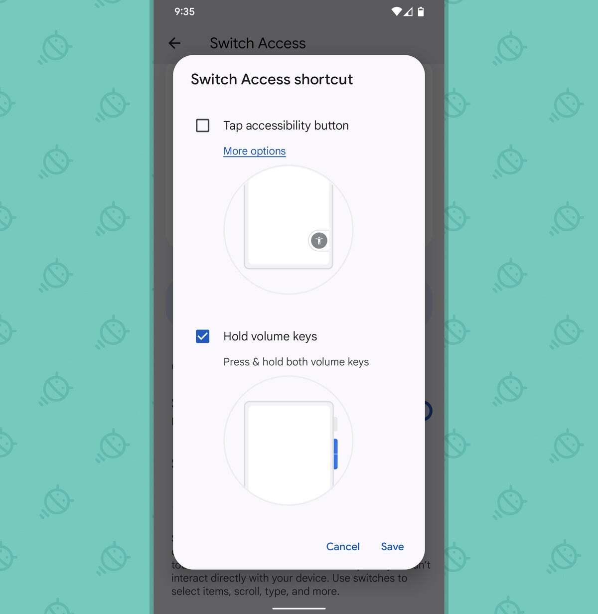 - 이제 "스위치 액세스 사용"이라는 단어 옆에 있는 토글을 누르고 프롬프트에 따라 시스템이 작동하는 데 필요한 권한을 부여하십시오. (많은 것처럼 들릴지 모르지만 (a) 이러한 작동 방식에 분명히 필요합니다. 그리고 (b) 이것은 우리가 말하는 시스템 수준의 Google 제작 앱이므로 실제로는 어쨌든 모든 종류의 타사 엔터티에 대한 액세스 권한 부여 프롬프트는 이러한 방식의 액세스가 필요할 때마다 나타나는 형식일 뿐입니다.)