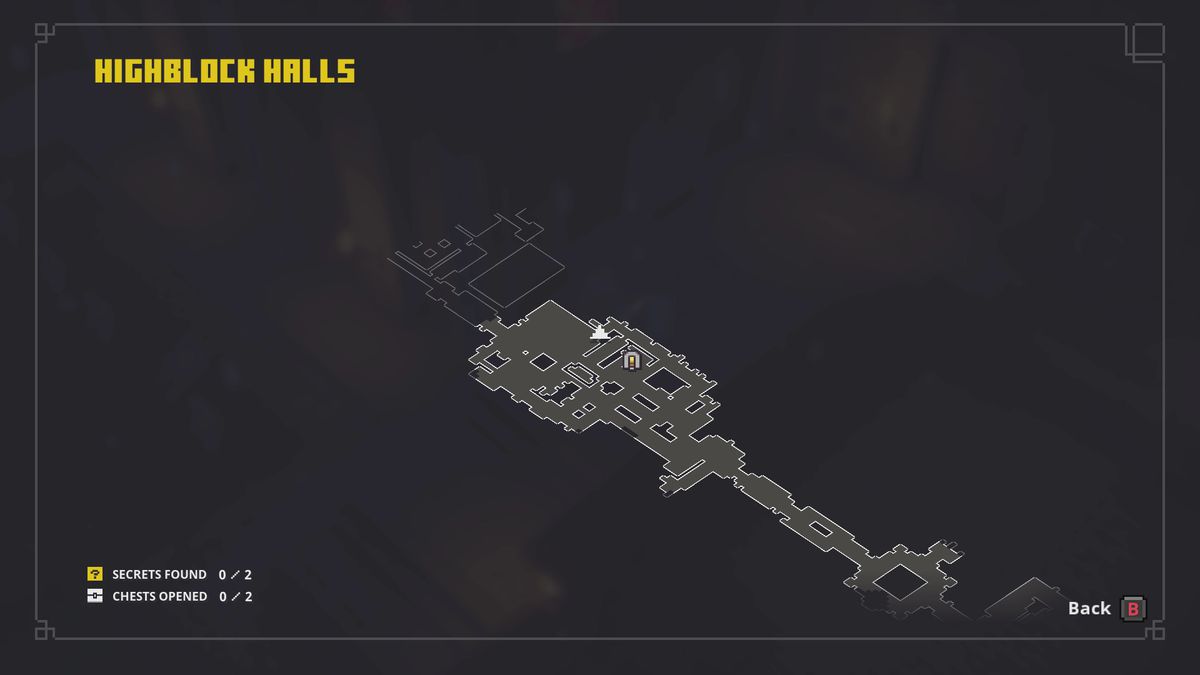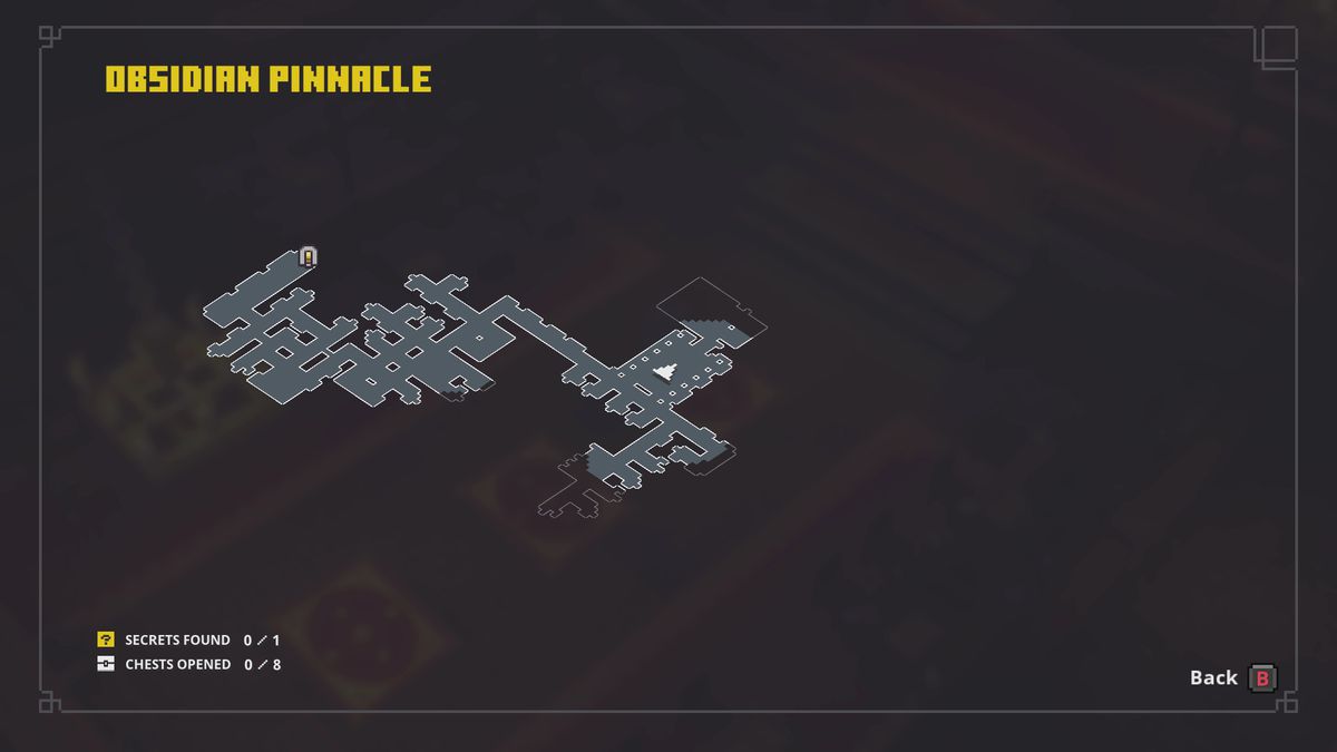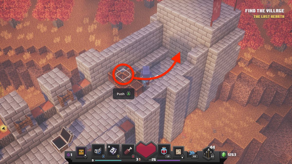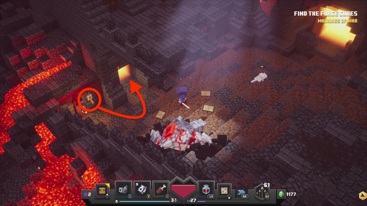 그 마을 사람들이 채광을 하고 있는 광활한 지역에서 북서쪽 구석에 변색된 벽 덩어리가 있는지 살펴보십시오. (우리는 다음 지역으로 가는 게이트 근처에 있었지만, 단계적인 레벨 생성으로 인해 레벨이 이동할 수 있습니다.) 스위치는 근처에 있는 빛나는 붉은 수정 사이에 숨겨져 있습니다.