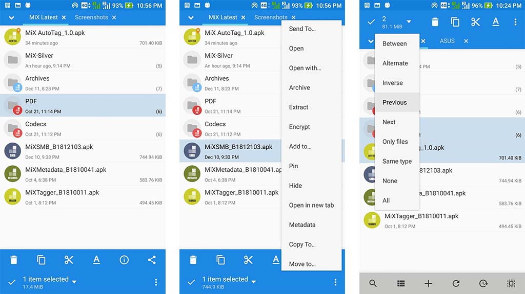 X-Plore 파일 관리자는 목록에서 보다 독특한 옵션 중 하나입니다. 강제 이중 창 앱으로 거의 항상 한 번에 두 개의 창을 관리하게 됩니다. 폴더 간에 복사/붙여넣기를 하거나 파일을 빠르게 이동해야 하는 경우에 유용합니다. 또한 다양한 유형의 파일, 클라우드 스토리지, 네트워크 스토리지(FTP, SMB, DLNA/UPnP), 내장 16진수 편집기, 루트 지원 및 기타 다양한 기능을 지원합니다. 그런 종류의 일에 관심이 있다면 APK 파일을 zip으로 볼 수도 있습니다. 유일한 단점은 1995년에 만들어진 것처럼 보인다는 것입니다. 하지만 외모에 속지 마십시오. 이 앱은 정말 좋습니다.