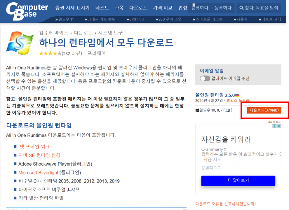 - 아래 링크를 통해 올인원런타임 프로그램을 다운로드 받으세요.
