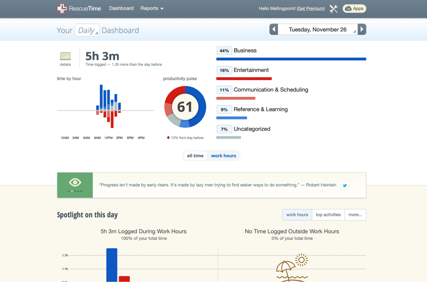 RescueTime (macOS, Windows, Linux, iOS, Android, Chrome, Firefox, Brave)