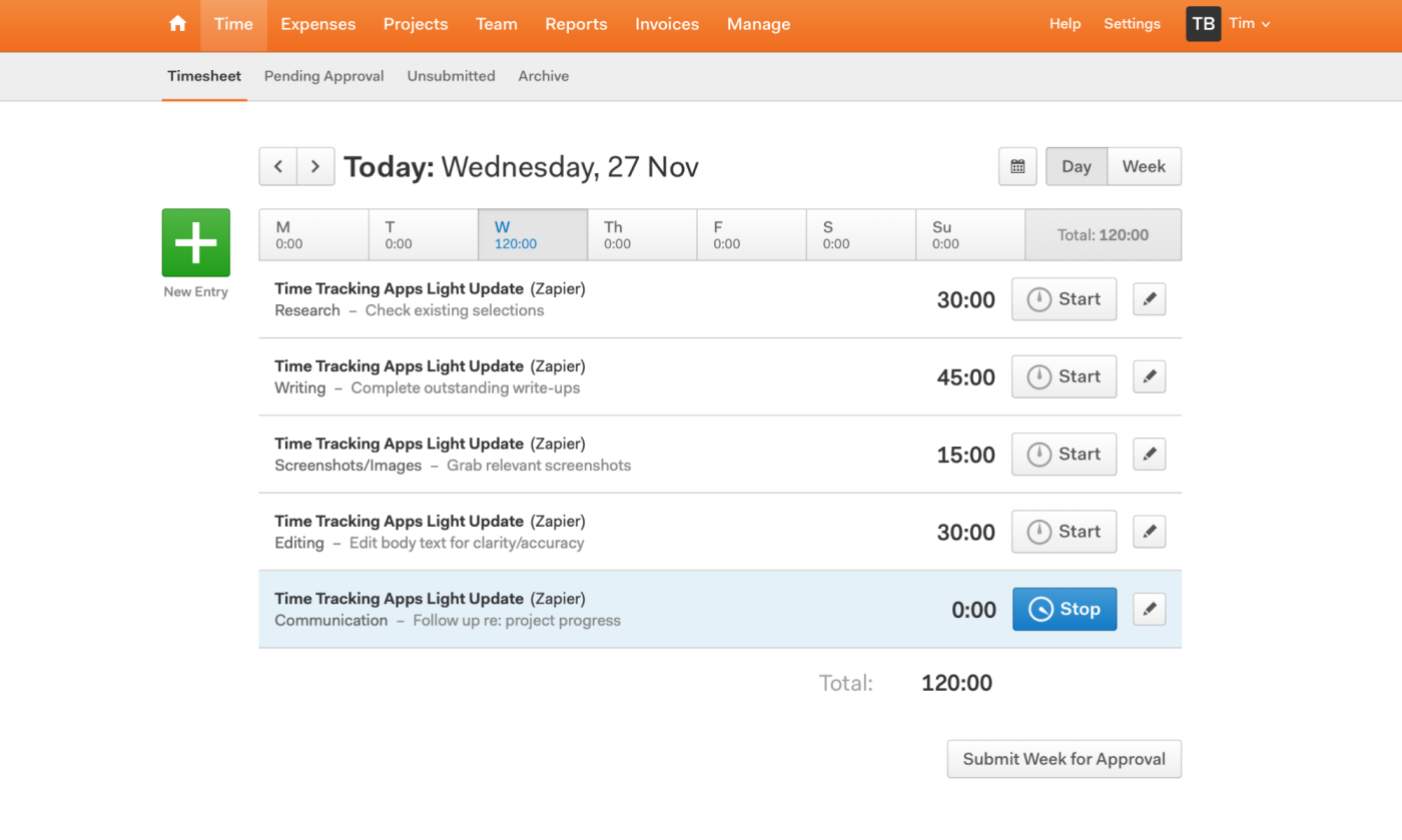 - 추적된 시간을 편집하거나 시간 블록을 수동으로 추가하는 기능 . 최고의 앱을 사용하면 점심을 먹기 위해 이륙하는 동안 실수로 타이머를 실행시킨 경우와 같이 사후 추적된 시간을 수정할 수 있습니다. 작업하지 않은 시간을 빼도록 시간 로그를 편집할 수 있어야 합니다. 또한 타이머를 실행하는 것을 잊어버린 경우를 대비하여 사후 시간 블록을 입력할 수 있는 앱이 필요합니다. 예를 들어, 전화 벨이 울리고 20분 상담 통화에 뛰어들 경우 타이머를 시작하지 않을 수 있지만 근무한 시간에 대해 기록하고 청구하고 싶을 것입니다.