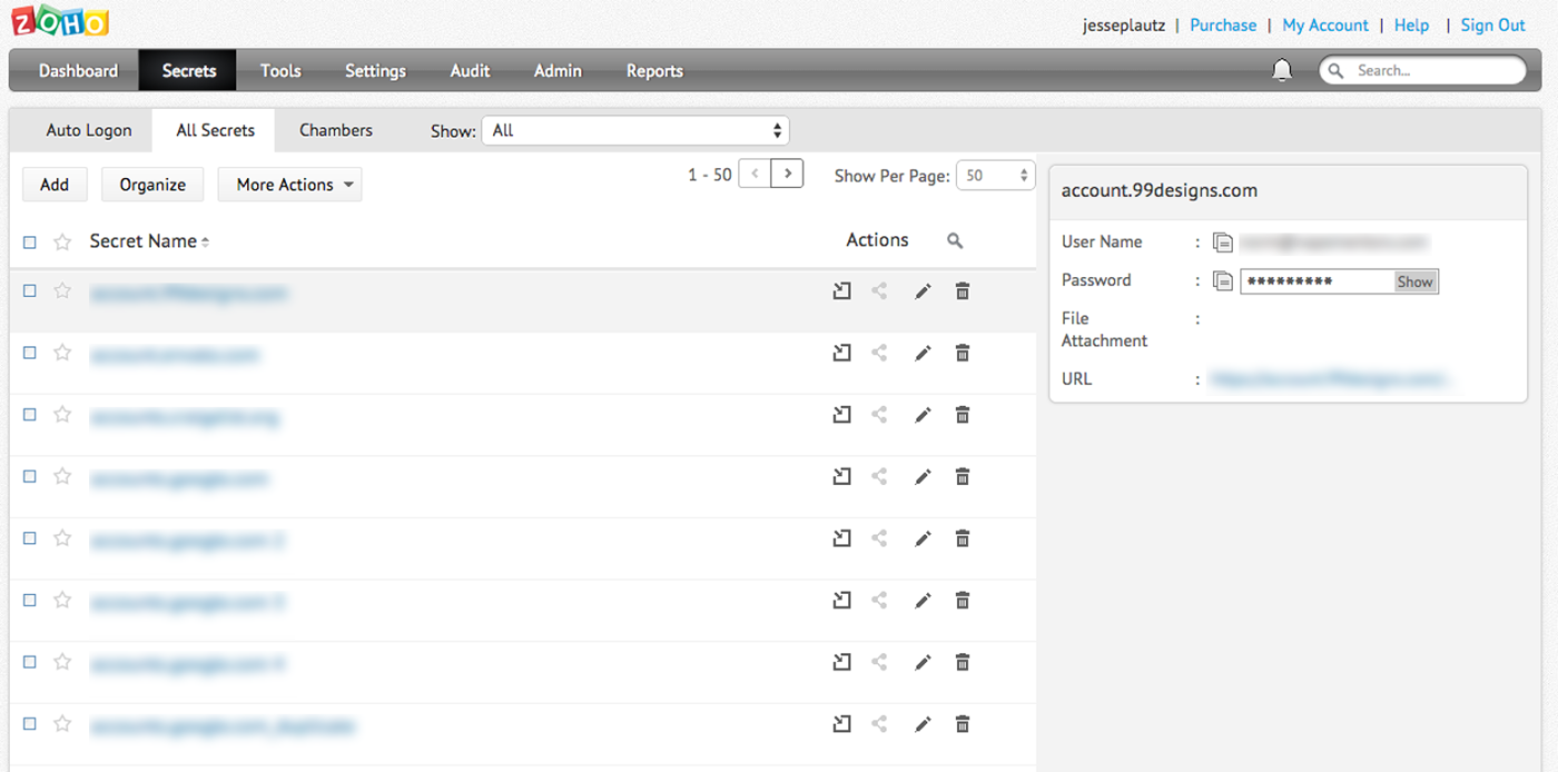 빠른 온보딩 프로세스와 전체 도구 세트를 통해 Zoho는 팀이 각 사용자의 사용을 모니터링하면서 암호를 공유할 수 있도록 도와줍니다.