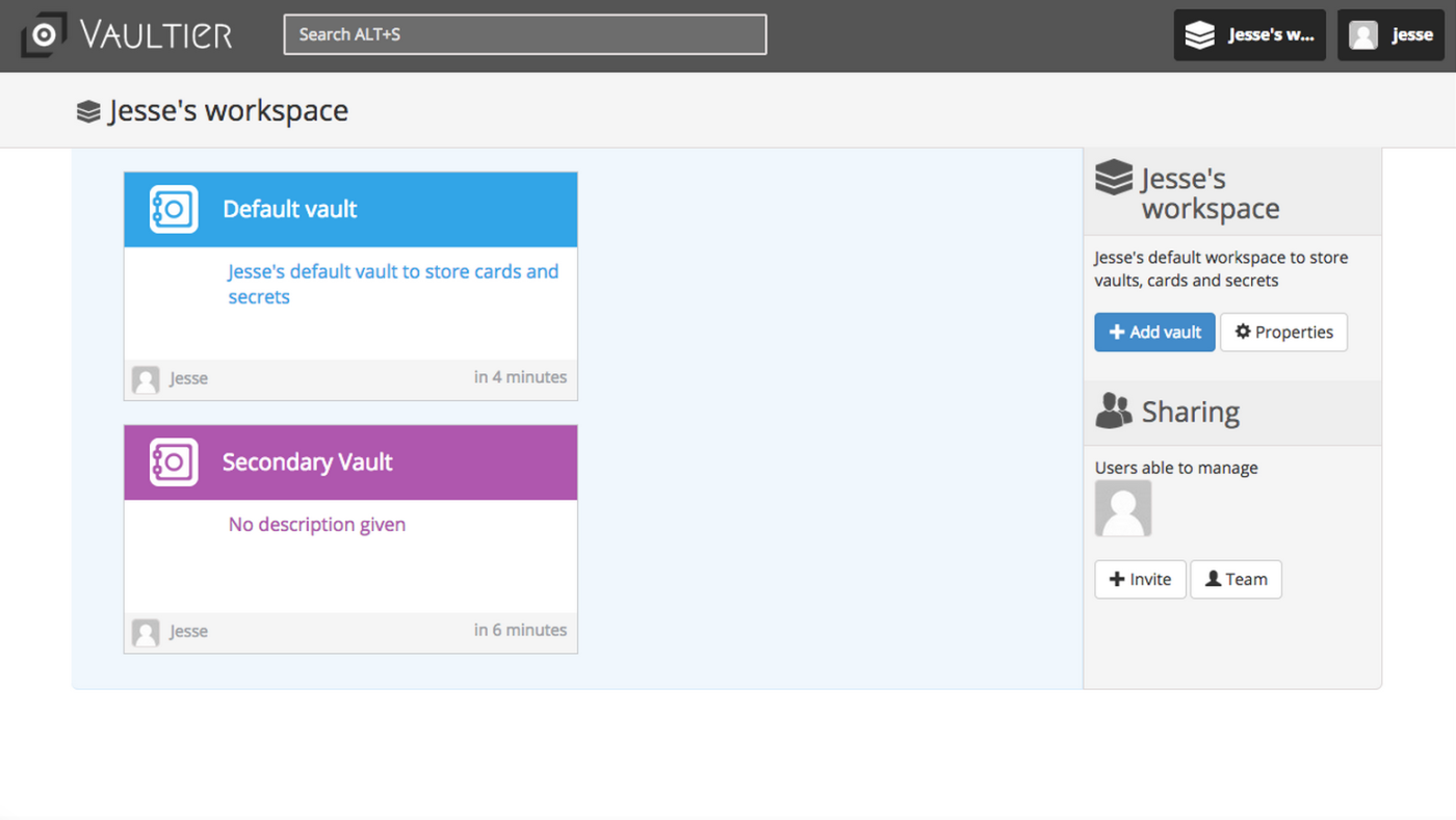 Vaultier는 개인 암호화 키를 사용하여 전체 팀을 위해 함께 보안하는 동안에도 비밀번호를 보호합니다. 비밀번호는 비밀번호와 계정 이름이 포함된 자체 "비밀"이 있는 계정에 대해 "볼트"로 구성되고 "카드"로 구성됩니다. 이러한 그룹은 권한에 대해서도 잘 작동합니다. 각 사용자는 전체 볼트 또는 볼트 내의 단일 카드에 액세스할 수 있습니다. 관리자는 모든 사용자 또는 팀에 액세스 수준을 취소하거나 할당할 수 있습니다.