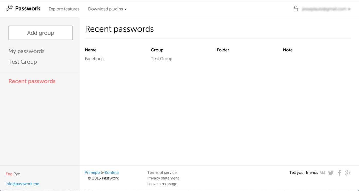 암호는 그룹으로 구성된 다음 폴더로 구성됩니다. 그룹은 대규모 팀에 가장 적합하며 폴더는 기능별로 계정을 구분할 수 있습니다. 그리고 계정에 로그인하는 것은 Passwork의 브라우저 확장을 사용하는 개인 암호 관리자만큼 쉽습니다.