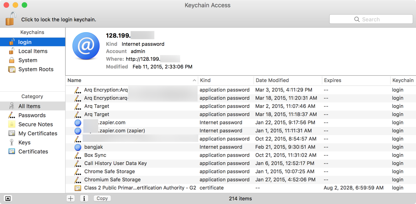 키체인은 인터넷 암호만 관리하는 것이 아니라 Mac의 완전한 보안 정보 데이터베이스입니다. 신뢰할 수 있는 WiFi 네트워크, FTP 서버 액세스, Apple TV 정보 및 암호화된 디스크 이미지까지 키체인에 저장할 수 있습니다.