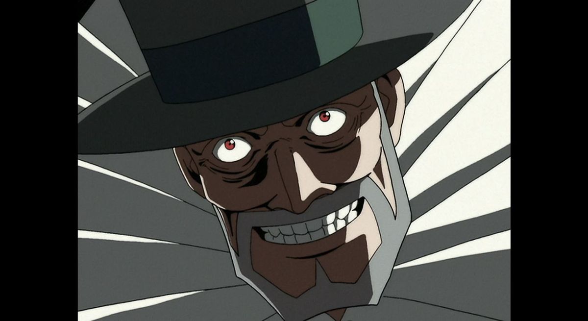 탑 햇과 빅토리안 넥 프릴을 쓴 유령 같은 창백한 얼굴은 오리지널 카우보이 비밥 20화 "피에로 르 푸"에 등장하는 심령 암살자 "매드 피에로" 통푸입니다.일본 만화 영화. 에피소드는 정체를 알 수 없는 화성의 도시 위에 떠 있는 신비한 Tongpu가 목표물과 경호원의 수행원에게 하강하기 전에 지팡이 바닥에서 발사된 총알로 장갑차를 공격하는 것으로 시작됩니다. Tongpu는 에피소드에서 현상금 대상이 아니지만, 스파이크는 무해한 야간 야외 촬영 후 의도치 않게 암살자와 길을 건너게 되면서 살인범의 새로운 집착이 되고 겨우 목숨을 건 가까스로 탈출합니다. 노골적인 공포에 손을 대는 쇼의 몇 안되는 에피소드 중 하나인 "Mad Pierrot"은 Spike와 Tongpu가 스페이스 랜드.