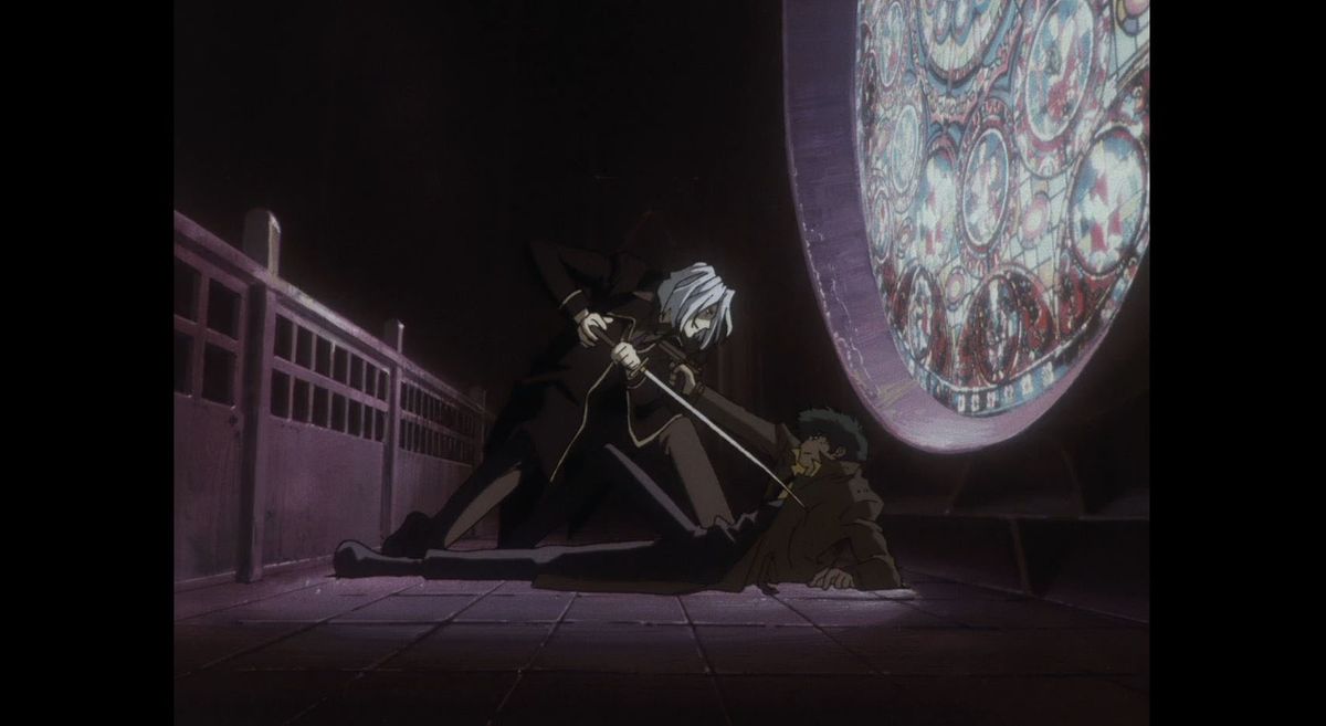 다섯 번째 에피소드 "Ballad of Fallen Angels"에서 볼 수 있듯이 스테인드 글라스 창에 조명을 비추는 전 친구이자 이제 천적인 Vicious와 치명적인 무승부를 기록한 Spiegel의 이미지는 쉽게 오리지널 애니메이션. 이 에피소드는 주로 레드 드래곤 신디케이트의 무자비한 멤버이자 스파이크의 옛 친구인 비셔스를 소개하고, 스파이크가 제트와 팀을 이루어 현상금 사냥꾼이 되기 전의 과거를 처음 엿볼 수 있는 기회를 제공하는 것으로 유명합니다.