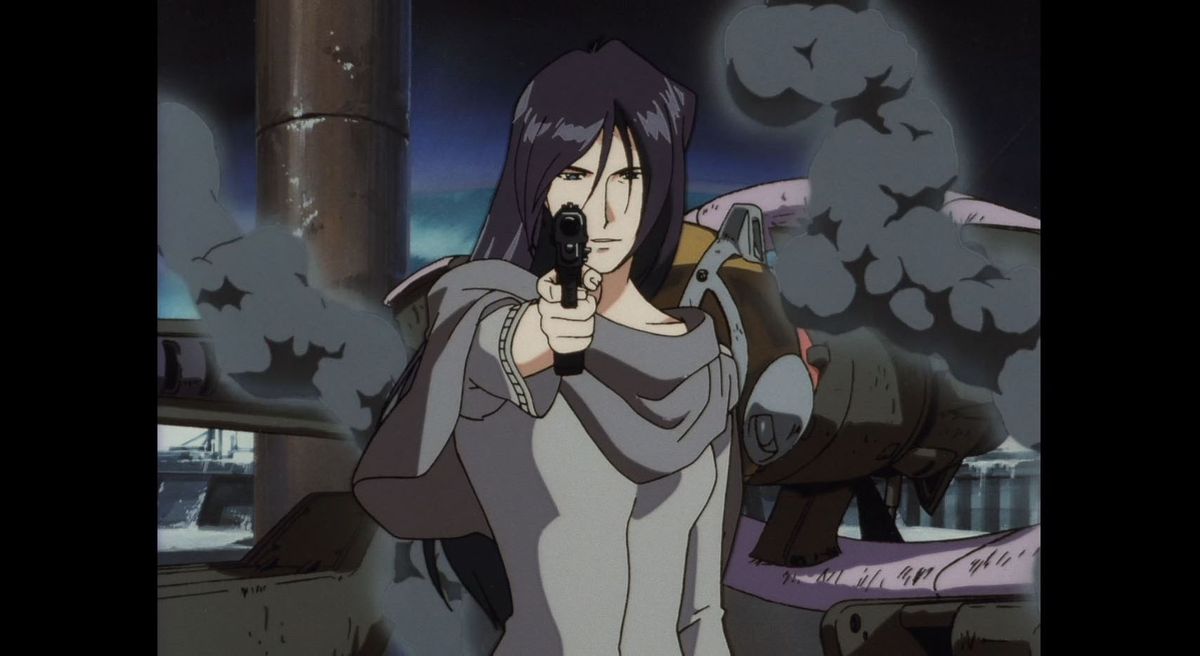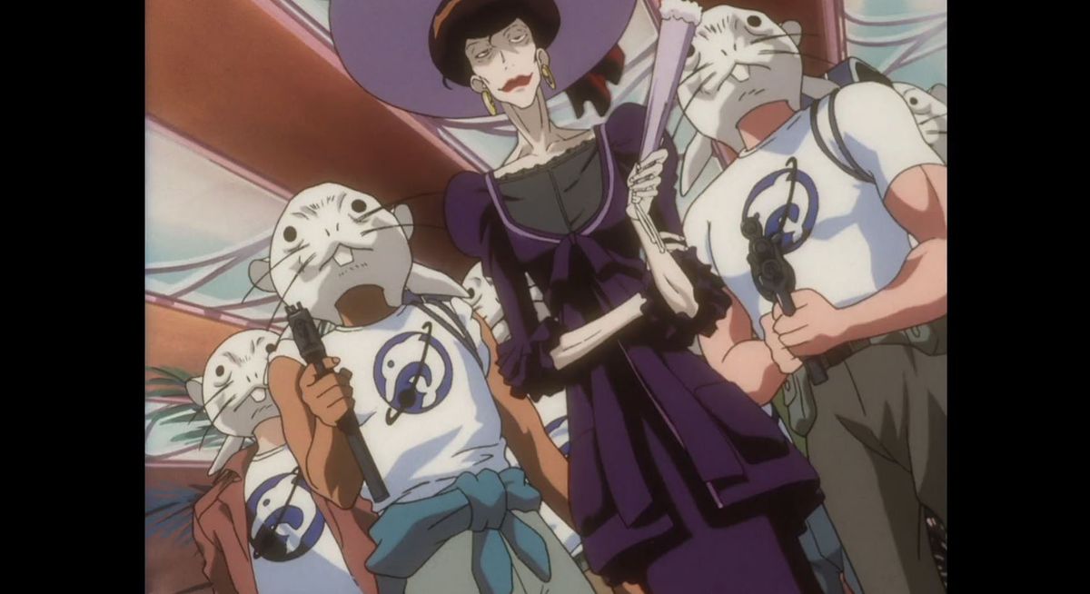 방독면을 쓴 총잡이 옆에 플로피 모자를 쓴 위협적으로 보이는 여성은 시리즈 "게이트웨이 셔플"의 네 번째 에피소드에서 극단주의 동물 권리 단체의 지도자인 마리아 머독입니다. 상당한 현상금이 걸린 유명한 범죄자인 Murdock은 그녀와 그녀의 부하들이 원래 추적하고 있던 목표물을 실수로 죽인 후 Spike와 Jet에 의해 체포됩니다. 그녀가 미친 듯이 계산적인 머독은 대격변에 가까운 야망을 가진 Bebop 승무원에게 위험한 적입니다. "Gateway Shuffle"은 아마도 Spike와 Faye Valentine이 각자의 배인 Swordfish II와 Red Tail에 탑승하여 맥박이 뛰는 피날레로 시리즈 팬들에게 가장 잘 기억될 것입니다. Murdock이 발사한 공세 바이러스 선전 미사일을 격추시키려고 필사적으로 시도한 후 닫히는 데 몇 초 밖에 걸리지 않은 초공간 게이트를 통해 성급하게 탈출합니다. 그런 종류의 최후의 순간, 최후의 승리는 Bebop 크루를 당신이 응원하고 싶은 그런 종류의 주인공으로 굳게 만드는 것입니다. 그들은 패자일 수 있지만 그들은 일을 끝냅니다.