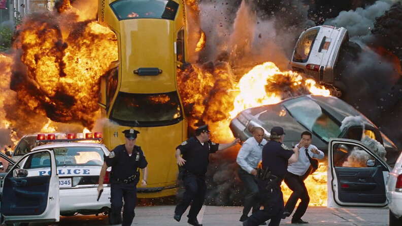 Tyson Bidner(뉴욕 로케이션 매니저): 9/11 테러 이후 뉴욕에서는 시끄러운 모든 종류의 폭발이나 특수 효과가 사람들을 긴장하게 만듭니다. 그리고 그것은 당신이 블록 떨어져 있고 무슨 일이 일어나고 있는지 보지 못하고 무언가를들을 수 있지만 사람들이 그것이 무엇인지보기 위해 달려 올 수 있기 때문입니다.