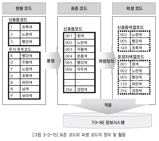 기업 내 존재하는 모든 정보시스템에서 사용하는 코드 정보를 수집한다. 일반적으로 각 정보시스 템에서는 단독 코드 테이블, 통합 코드 테이블, 애플리케이션 정의 등 3가지 코드 관리 형태가 있으 므로 코드 관리 형태별로 수집 방법을 달리해야 한다.