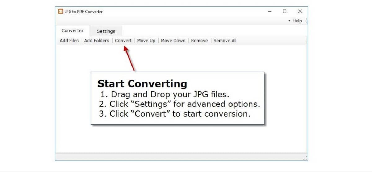 유용하고 간단한 옵션입니다. 단순하고 거의 스파르타적인 인터페이스로, JPG를 PDF로 변환기 사진을 PDF로 변환하는 작업을 위한 흥미로운 도구로 제공됩니다. 또한 무엇보다도 0에서 100% 사이의 범위에서 이미지 품질을 선택할 수 있습니다. 물론 무료 평가판은 15일 동안만 사용할 수 있습니다. 이 시간이 지나면 이 소프트웨어를 계속 사용하려면 결제로 이동해야 합니다.