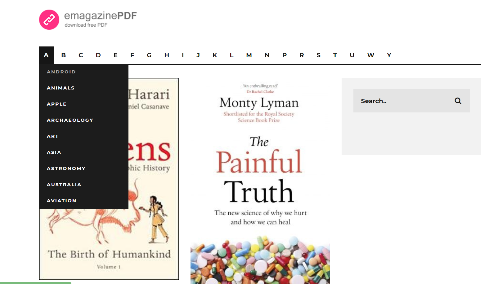 - 각 알파벳 별 다양한 카테고리에 맞는 PDF 잡지를 모아 놓은 사이트이고, 영문 자료로 구성되어 있음