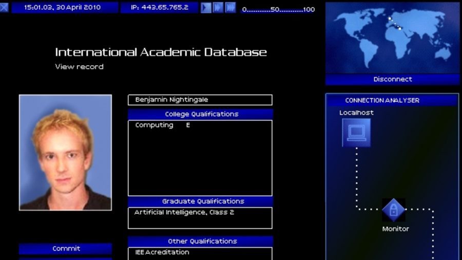 원래 9/11 테러 이후 한 달도 채 안 되어 출시된 Uplink는 코드 크래킹의 프레젠테이션에서 90년대 해커 영화의 미학을 에뮬레이트하는 단순한 시대로의 후퇴입니다. System Shock 2와 달리 해킹은 여러 옵션 중 하나가 아닙니다. 그것은 전체 게임이며 결과적으로 화면은 플레이어가 상호 작용하는 화면을 정확하게 나타냅니다(이 목록의 다른 많은 항목이 차용한 프레젠테이션).