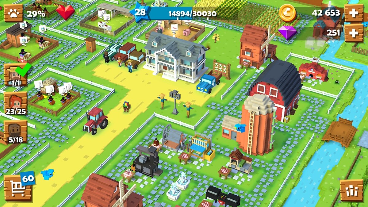 마인 크래프트 스타일의 농장 게임 그런 환경과 큐빅 디자인을 위해, 그리고 우리는 언제라도 지루하지 않을 것입니다. 그것은 당신의 땅을 관리하고 트랙터로 도시로 제품을 운송하고 이웃과 친구를 사귈 수있는 임무를 가지고 있습니다.