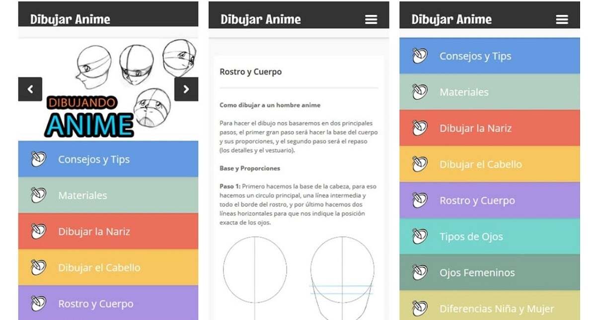 애니메이션이나 다른 테마를 그리는 법을 배울 때 가장 도움이 될 수있는 응용 프로그램을 선택할 때 가장 먼저 고려해야 할 것은 그것이 제공하는 콘텐츠 유형입니다. 사진 콘텐츠는 비디오 형식의 콘텐츠보다 우선합니다., 영상을 멈추지 않고도 우리가 그리려는 신체 부위를 시각화 할 수 있기 때문입니다.