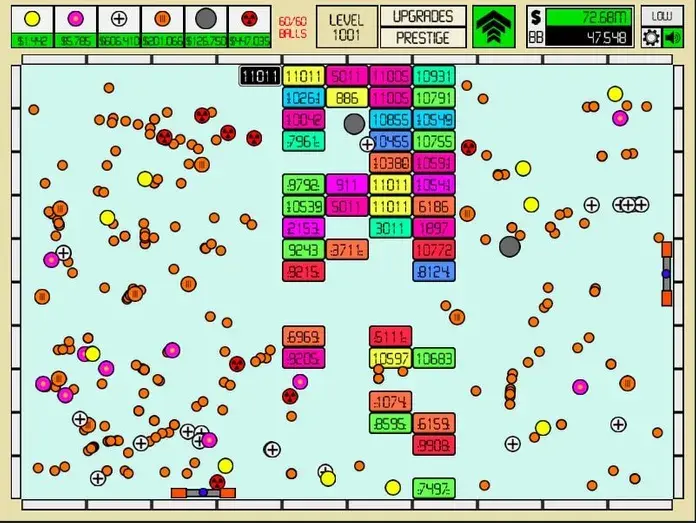 점, 일명 공을 업그레이드하고 힘을 높일 수 있습니다. 따라서 블록을 치면 즉시 파괴됩니다. 속도를 높이고 다른 기능을 정렬하고 잠금 해제할 수도 있습니다. 게임은 경험을 플레이하는 것이 꽤 재미있을 정도로 간단합니다.