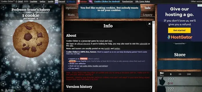 Cookie Clicker는 최고의 방치형 게임이며 아마도 모든 clicker 게임의 선구자일 것입니다. 클리커 게임을 유명하게 만든 최초의 게임입니다. 할 일이 별로 없습니다. 그러나 게임의 게으름이 매력적입니다. Julien "Orteil" Thiennot이 게임을 개발했습니다.
