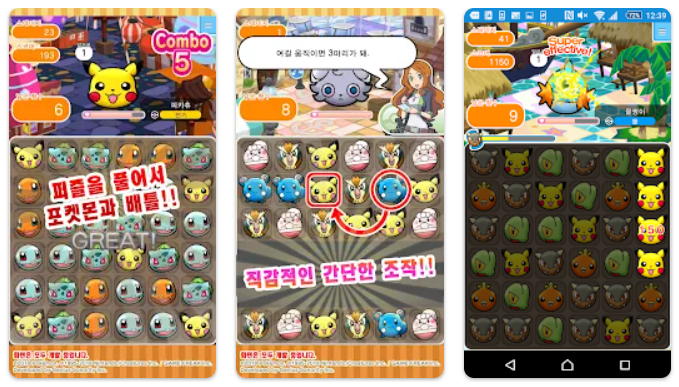 포켓몬 컴퍼니의 히트작 중 하나이며 그것은 퍼즐에 불과합니다.. 레벨을 완료하기 위해 동일한 피규어를 결합하는 것 중 하나이며,이 경우 피규어는 우리가 수집 할 수있는 다른 포켓몬입니다. 우리는 야생 포켓몬과 싸울 수 있도록 세 개 이상의 인물을 수직 및 수평으로 정렬 할 수 있습니다.