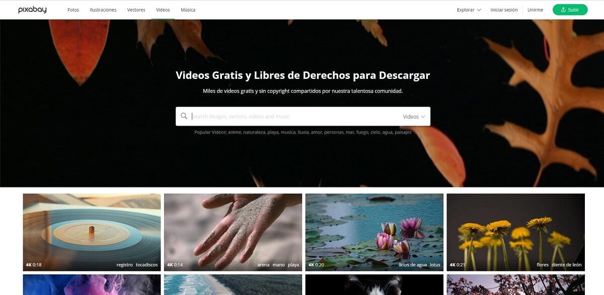 우리 팀의 애니메이션 배경 화면으로 사용할 저작권이 없는 비디오를 다운로드할 수 있는 또 다른 흥미로운 웹 페이지는 다음에서 찾을 수 있습니다. Pixabay. 이 웹사이트는 많은 수의 모든 주제에 대한 짧은 비디오: 자연, 동물, 도시, 날씨 요소, 사람...