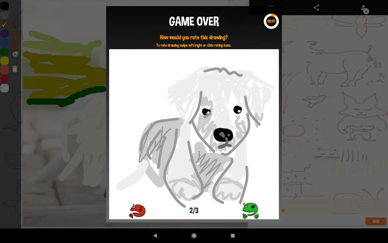 첫 번째 게임은 더 비슷합니다. 그리고 추측. 다른 사람이 무엇을 그리고 있는지 알아 내야합니다. 친구와 함께하거나 스마트 폰에서 비디오 게임에 연결된 수천 명의 사람들과 온라인으로 플레이 할 수 있습니다. 한 번 추측하면 그림을 그려야하고 다른 사람은 추측해야합니다.