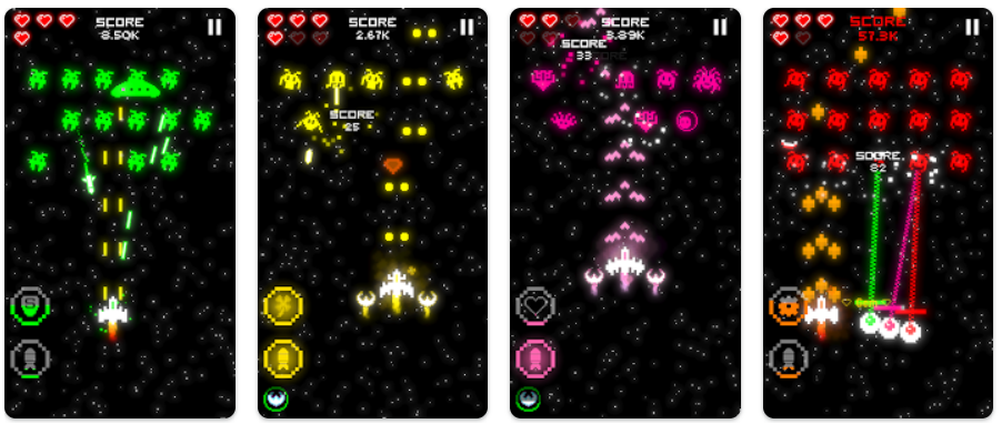 우주 비행사에 맞서 외계인이 이끄는 우주선과 맞서야하는 은하 간 전투의 귀환. 그것의 미학은 당신에게 과거의 진정한 레크리에이션 게임을 상기시켜 줄 것입니다. 하지만 새로운 이미지와 추가 된 기능으로 군함의 커스터마이징이나 온라인 Pvp 게임이 두드러집니다.