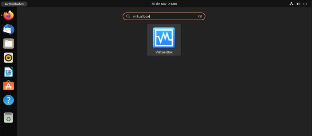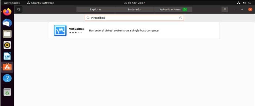 다음 화면에서 «Virtual Box » 에서 검색을 누르면 남은 것은 설치 버튼 을 누르고 전체 프로세스가 완료될 때까지 기다리는 것입니다. 그런 다음 나중에 응용 프로그램 메뉴 에서 프로그램을 실행 합니다. 다음 그림과 같이: