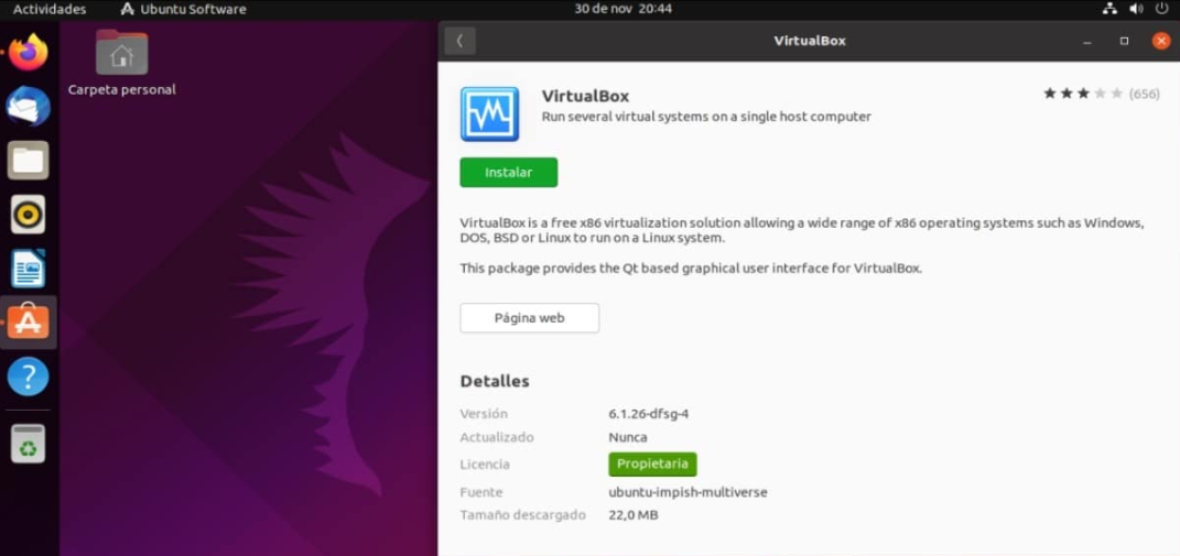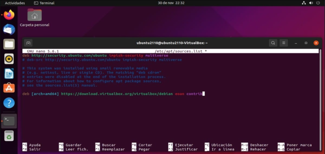 «sudo apt install ./Descargas/virtualbox-6.1_6.1.30-148432~Ubuntu~eoan_amd64.deb»