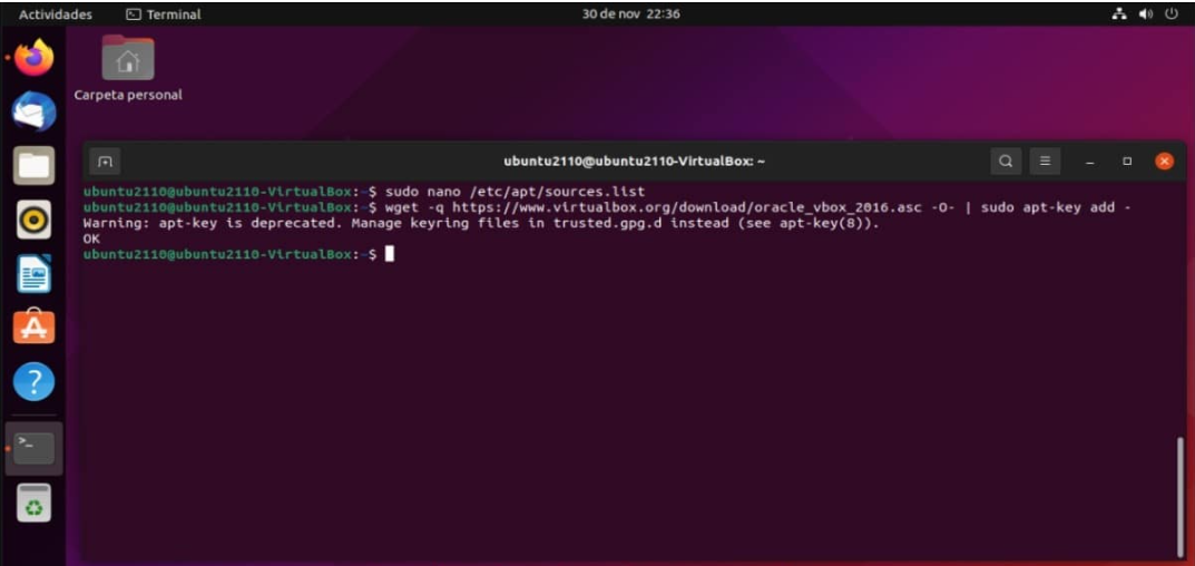«wget -q https://www.virtualbox.org/download/oracle_vbox_2016.asc -O- | sudo apt-key add -»