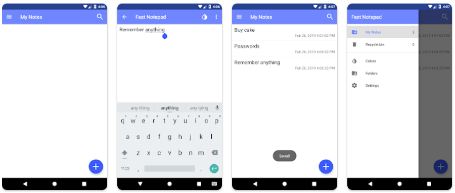 사용자 별 4,8 개의 별표를받은 Quick Notepad는 메모에 빠르게 액세스 할 수있는 애플리케이션입니다. 세부 사항에서 길을 잃지 않도록 너무 많은 번영없이, 중요하지 않습니다.