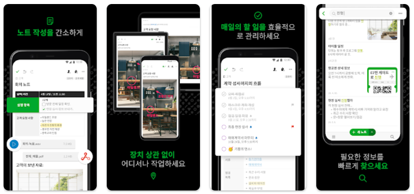 Evernote는 아무것도 잊을 수없는 응용 프로그램이며 주석이 달린 정보에 언제든지 액세스 할 수 있습니다. 손으로 쓴 메모를 입력하고 문제없이 스캔하고, 보류중인 작업을 잊지 말고 최신 상태로 유지하기 위해 알림을 추가하십시오. 사진, 이미지, 웹 페이지 또는 오디오를 포함하고 모든 것을 즉시 찾을 수 있습니다. 원하는대로 노트를 구성하고 원하는 사람과 공유하세요.
