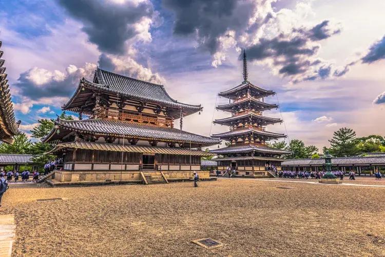 현존하는 세계에서 가장 오래된 목조 건물이 있는 나라현의 호류지 사찰은 고대 건축물들이 모여 있는 인상적인 곳입니다. 호류지에는 호류지 및 홋키지라는 2개 사찰에 48개의 불교 기념물이 있습니다. 기념비의 역사는 일본에 불교가 도입된 직후인 7세기 후반 또는 8세기 초반으로 거슬러 올라갑니다. 건물 사이로 많은 유물과 국보를 볼 수 있는데, 그중에서도 특히 오층탑, 중앙문과 대웅전이 눈에 띕니다.