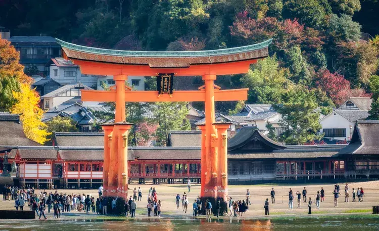 일본의 가장 상징적인 신사 중 하나인 히로시마현 이쓰쿠시마 신사는 바다 위에 세워져 만조 때 떠 있는 것처럼 보이는 신비로운 ‘도리이’ 문으로 가장 잘 알려져 있습니다. 12세기 영향력 있는 군사 지도자인 다이라노 기요모리에 의해 창건된 이스쿠시마 신사는 오랫동안 신도의 중요한 중심지였습니다. 미야지마(신사 섬)라고도 불리는 이쓰쿠시마 섬에 위치한 신사와 세토내해에 떠 있는 빨간 도리이는 세계적으로 유명한 일본의 상징이 되었습니다. 히로시마에서 출발하는 여러 페리 중 하나를 타고 바다를 건너면, 주홍색으로 칠해진 이쓰쿠시마 신사 건물을 둘러보거나 섬을 자유롭게 돌아다니는 많은 사슴을 만나고 ‘모미지 만주’(단팥이나 다른 속을 채운 단풍잎 모양의 빵)와 같은 지역 별미를 맛볼 수 있을 뿐만 아니라, 썰물 때 거대한 도리이까지 걸어갈 수도 있습니다.
