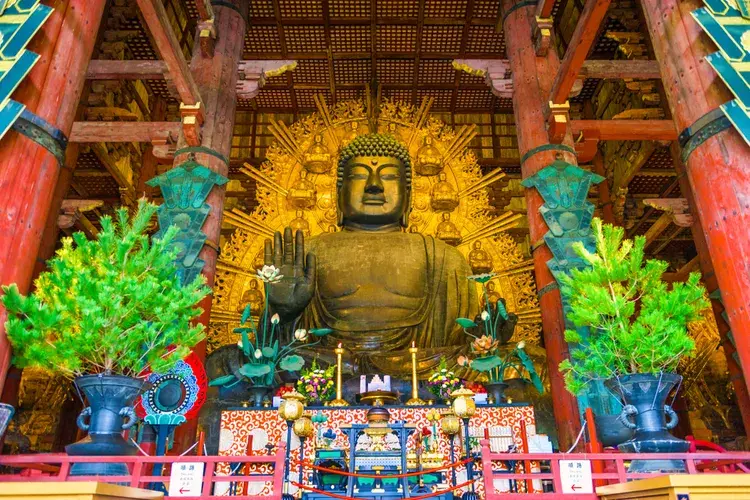 일본의 고대 수도인 나라의 문화적 풍성함은 8개 이상의 유네스코 세계 유산으로 인정되었습니다. 도다이지, 고후쿠지, 도쇼다이지, 간고지, 야쿠시지 등의 사찰과 가스가타이샤 신사, 헤이조궁, 가스가산 원시림이 함께 문화유산으로 등재되어 있습니다. ‘고대 나라의 유적’으로 통칭되는 도시 전체는 역사적인 매력을 발산하여 방문객에게 시간을 거슬러 올라간 것처럼 느끼게 합니다. 또한 시내와 나라 공원을 자유롭게 돌아다니는 많은 사슴들에게 먹이를 주는 색다른 체험도 할 수 있습니다.