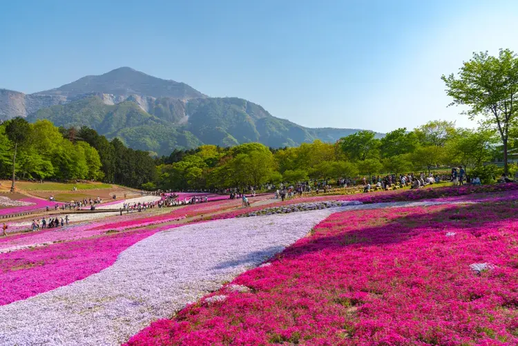 이 공원은 도쿄 중심부에서도 멀지 않은 사이타마현 지치부에 있습니다. 시바자쿠라 언덕에는 9종류의 시바자쿠라가 심겨 있으며 총 40만 송이의 꽃을 피웁니다. 17,600㎡ 면적에 분홍색, 보라색, 흰색 컬러로 화려한 그라데이션과 독특한 형태로 배치되어 있습니다. 후지산만큼 웅장하지는 않아도 시바자쿠라 들판 위로 솟아 있는 부코산이 도시를 벗어나 아름다운 자연 속으로 금방 빠져들게 해줍니다. 주변에 있는 노점상에서 지역 특산품인 미소 포테이토(감자튀김과 일본 된장)를 드셔보세요.