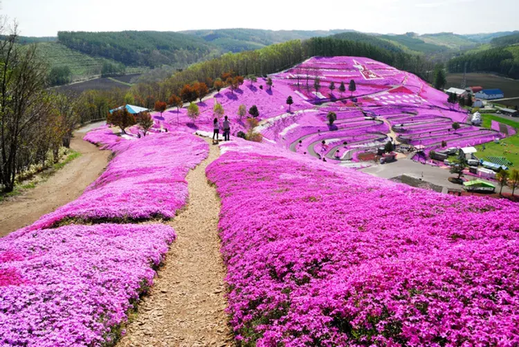 이 산은 후지산처럼 보일 수도 있지만, 사실은 다릅니다! 이 시바자쿠라 축제는 홋카이도 굿찬초에 위치하며 요테이산의 3,000㎡ 면적에 분홍색 융단이 깔려 있습니다. 노란색 유채꽃과 붉은색, 흰색, 보라색, 분홍색 꽃잔디가 어우러지는 다채로운 대비가 잊을 수 없는 광경을 선사합니다. 이곳은 모든 방문객이 무료로 이용할 수 있으며, 5월 하순부터 개화기까지는 정원에서 걸어서 5분도 안 걸리는 곳에 임시 주차장이 운영됩니다.
