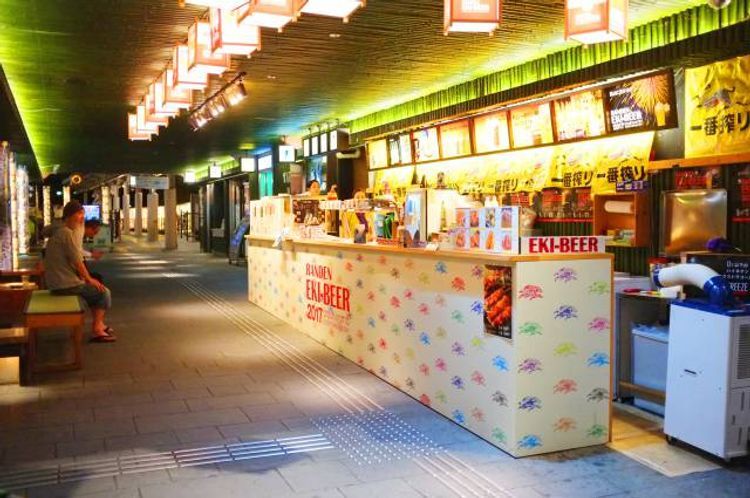 아라시야마역 건물과 철로를 따라 총 600개의 빛나는 장대가 세워져 있는데, 이것은 ‘기모노의 숲’이라는 제목의 설치 예술 작품의 일부입니다. 장대의 재료는 교토의 전통 공예품인 유젠조메(염색 기법)를 만드는 데에 사용되는 헝겊이며, 이것을 다시 아크릴판으로 덮어 제작한 것입니다. 이렇게 늘어선 장대는 하나의 숲을 이루어 로맨틱한 분위기를 연출합니다. 여름철에는 역 건물에서 ‘란덴역 맥주’라는 야외 맥주 가든이 열리므로 잠시 들려 맥주 한잔으로 목을 축여 보는 것도 괜찮을 것입니다.