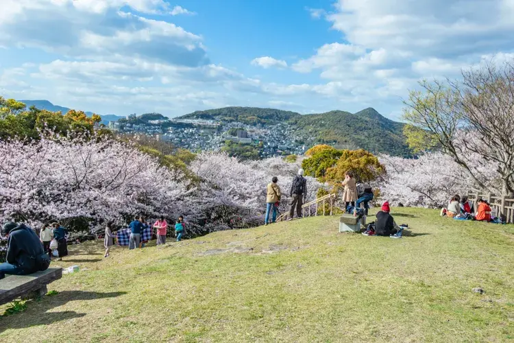 가자가시라 공원은 해발 159m의 가자가시라산 정상에 펼쳐져 있습니다. 긴 현수교로 나가사키시와 항구가 내려다보이는 공원은 도시 최고의 전망 중 하나로 평가됩니다. 이 녹지는 꽃구경 명소로도 인기가 높아서 봄이 되면 350그루의 벚나무가 만발하고, 초여름에는 수많은 수국이 만발하여 아름다운 꽃으로 둘러싸인 도시를 감상할 수 있습니다.