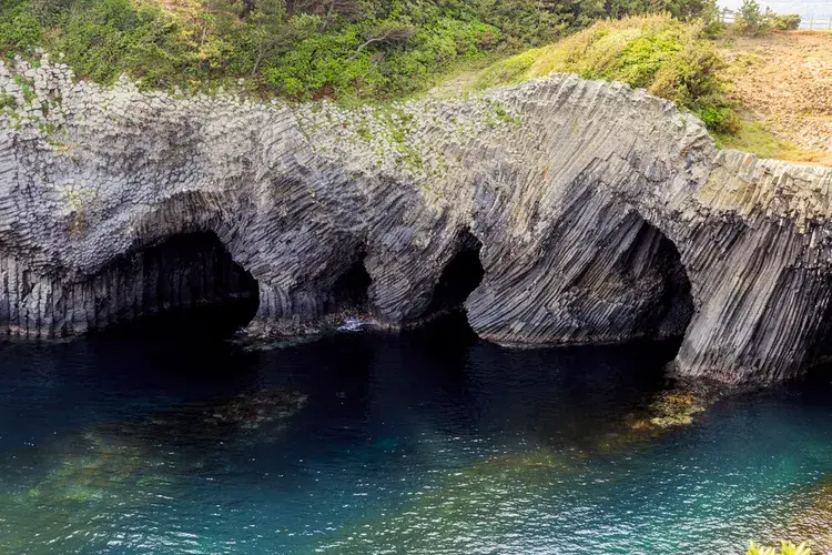 나나쓰가마 석회동굴은 나가사키의 사랑받는 자연의 경이 중 하나입니다. 3천만 년 전 바다에서 솟아난 일련의 동굴로 이루어져 있으며, 물에 의한 침식으로 희귀한 지형을 형성했습니다. 유람선을 탈 수도 있고, 동굴과 바다가 한눈에 보이는 나나쓰가마 상류의 고원에서 도보로 탐험할 수 있는 이곳은 국보로 지정되어 있습니다.