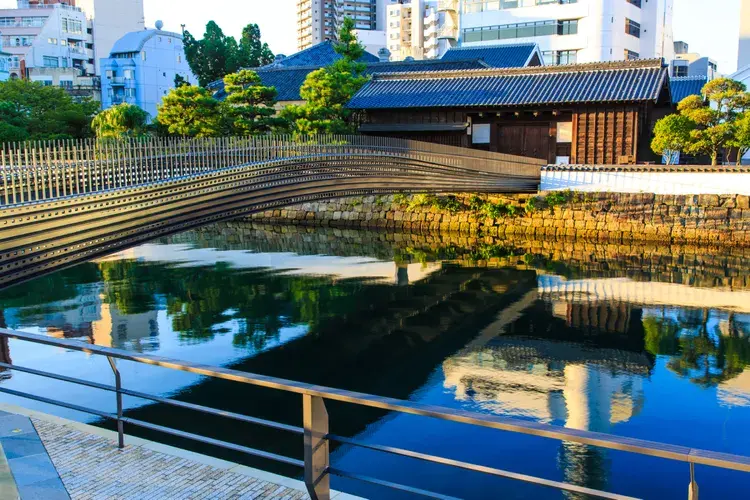 한때 도시 무역의 동맥 역할을 했던 나카시마 강을 가로지르는 여러 개의 석교가 있지만, 메가네바시는 물에 반사되었을 때 안경을 닮은 둥근 아치 덕분에 훌륭한 건축미 때문에 사진 촬영 명소로도 유명한 곳입니다. 다리와 상점과 카페가 점재해 있는 그림 같은 주변 환경은 고요한 산책을 즐기기에도 좋습니다.