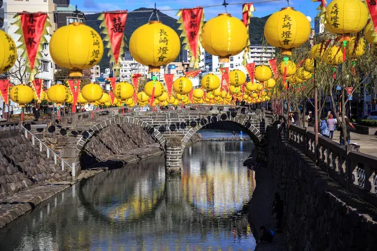 나가사키의 신치 차이나타운에서 처음 열렸던 행사였지만, 수십 년에 걸쳐 등불 축제는 나가사키의 주요한 겨울 행사가 되었습니다. 음력 설의 첫 15일 동안 열리는 축제 기간에 도시가 15,000개 이상의 중국 등불로 장식되어 거리와 건물을 매혹적인 색상으로 비춥니다. 십이지 동물의 등불과 같은 거대한 등불의 전시도 즐길 수 있습니다.